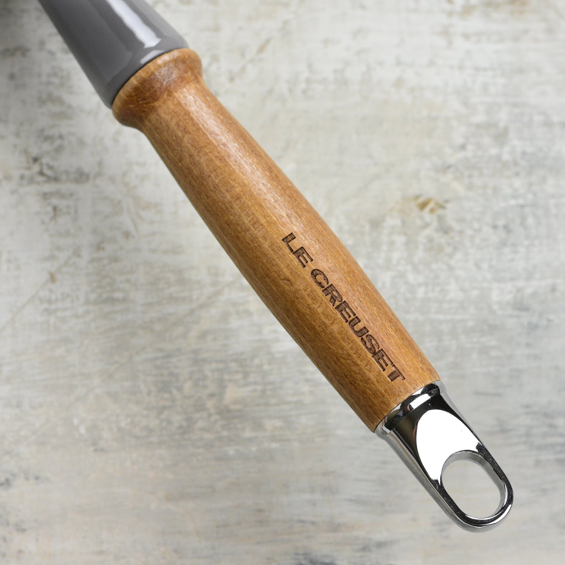 - Ergonomic, durable maple-stained beechwood handle stays cool to the touch; designed for easy lifting from stove to table