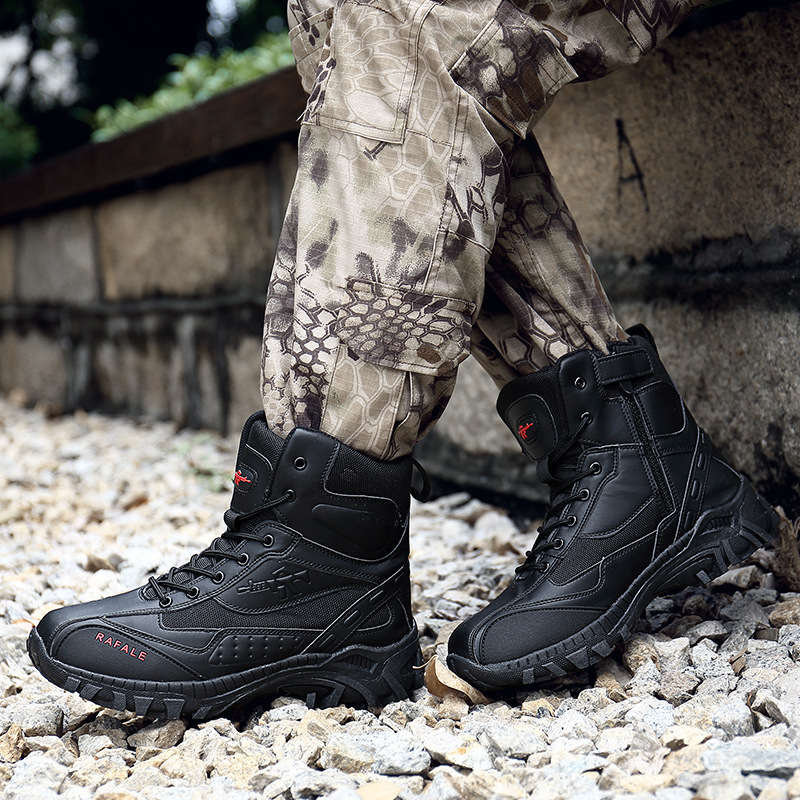 Ausgestattet mit einer Zehenkappe aus Gummi und einer verstärkten Ferse für einen kollisionssicheren Schutz, erhöhen diese Kampfstiefel die Stabilität, bieten Dämpfung, Knöchelunterstützung und schützen die Zehen vor scharfen Gegenständen. Sie eignen sich perfekt für die tägliche Arbeit oder taktische Aktivitäten und bieten hervorragenden Schutz.