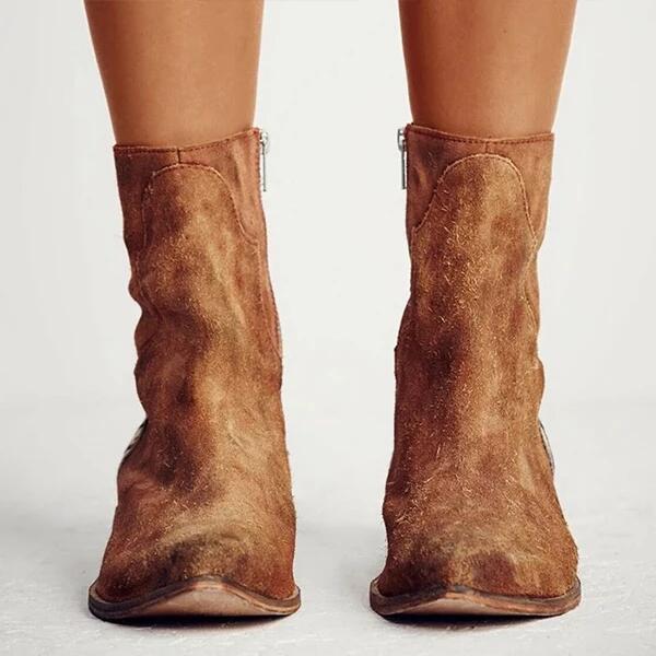 Damen Leder Mittlerer Absatz Retro High Heels