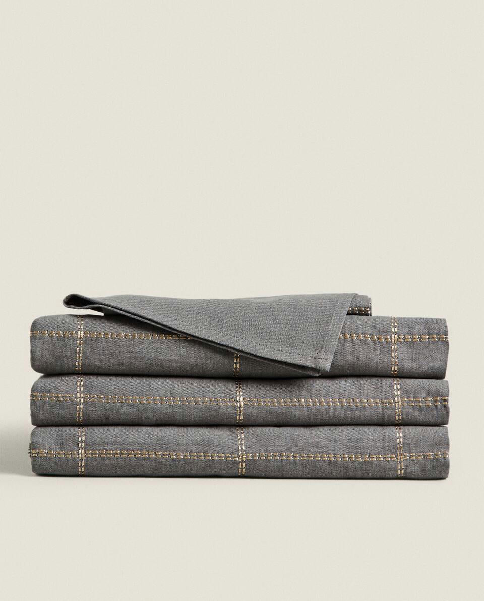 Christmas linen tablecloth with a contrast embroidered chain detail.