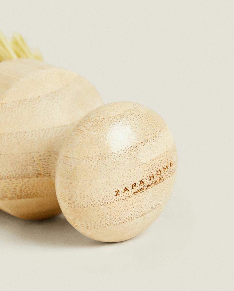 Small brush with a wooden handle. Ergonomic shape that is perfect for holding. Hanging loop.