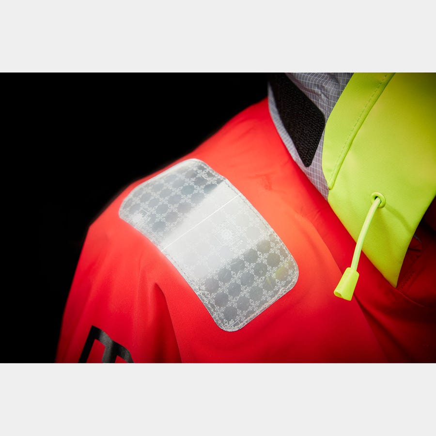 Designed for professional sail racers, our Aegir Race sailing jacket is ready to take on the elements and gives you the freedom of movement you need to maneuver at sea. We built it our trusted and durable Professional technology. It's extremely waterproof/breathable and windproof during your sailing adventures. The jacket boasts an ergonomic design, complete with adjustable cuffs and hem, ensuring unrestricted movement at critical points. Professional-grade details include a neon yellow and packable hood, a protective face mask, SOLAS reflectives, a hangar loop, drainage seams and much more.