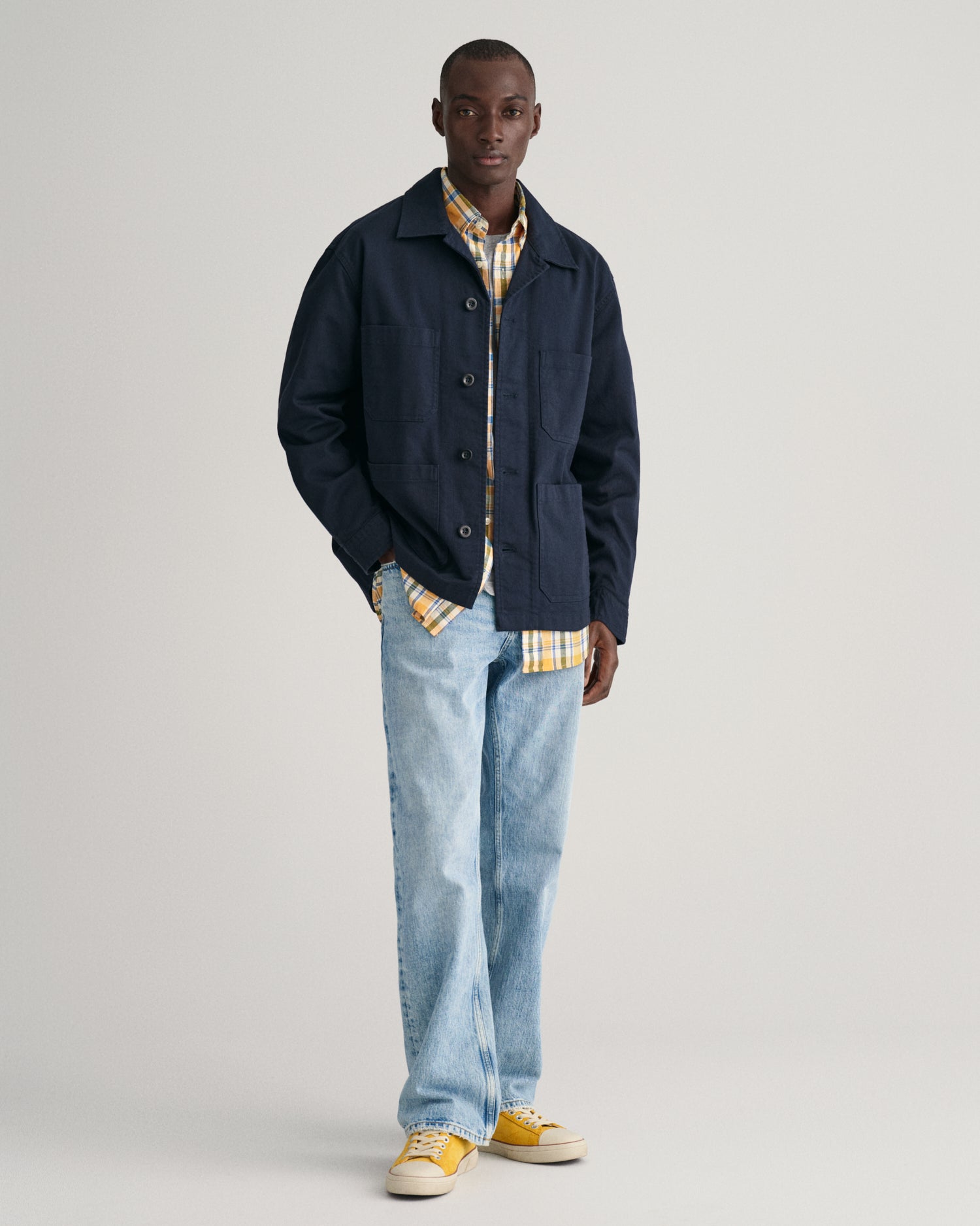 Made of a crisp linen-cotton blend, this regular fit shirt is light, breathable and airy. Patterned with yarn-dyed checks, it has a button-down collar, curved hem, a chest pocket with shield embroidery and a box pleat and locker loop at the back.