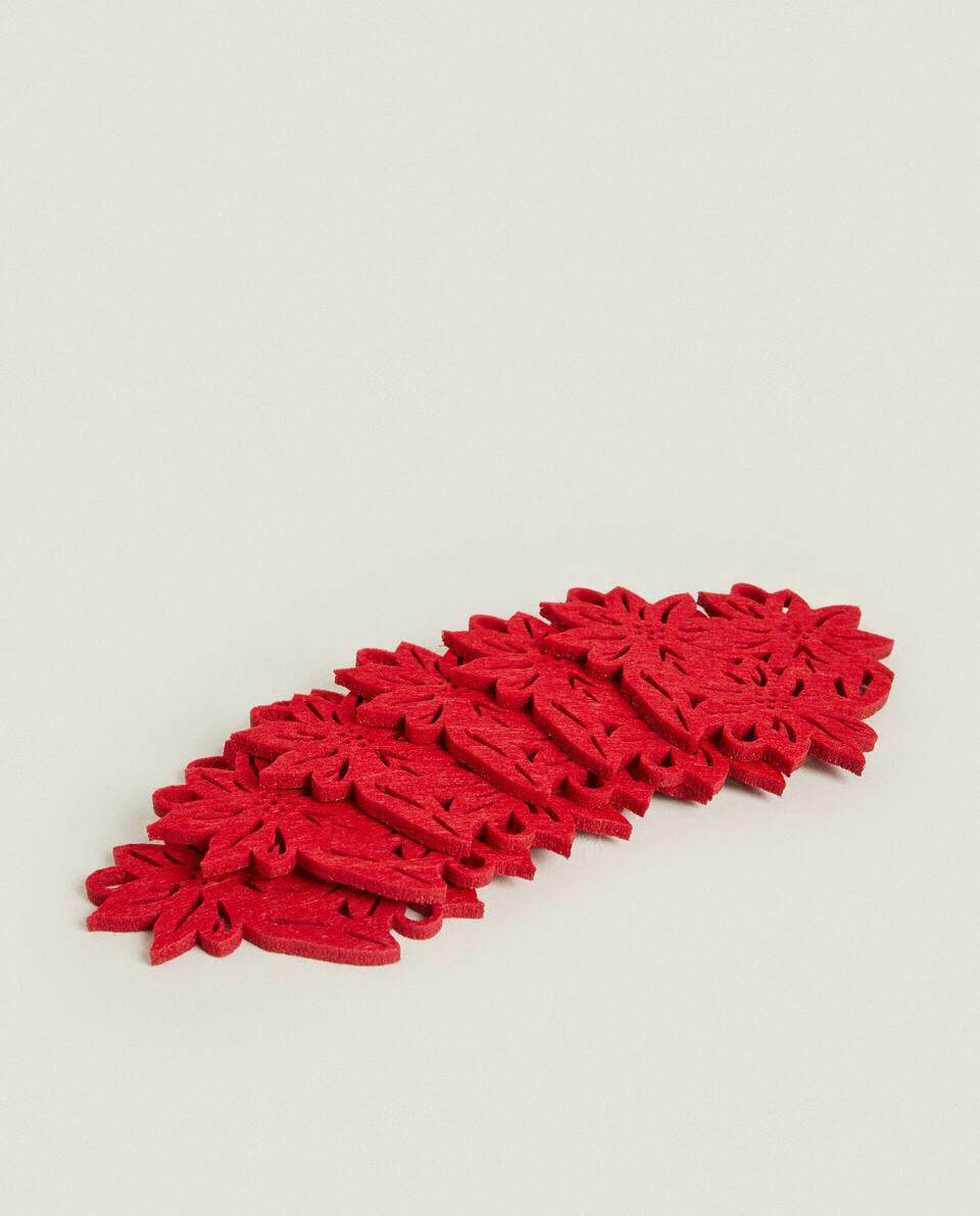 Round felt Christmas coasters with a floral pattern cut-out design.Pack of 6.