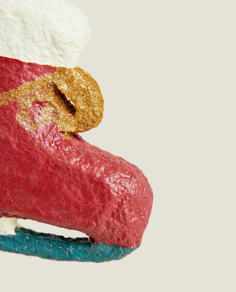 Papier-mach Christmas tree decoration in the shape of an ice skate.