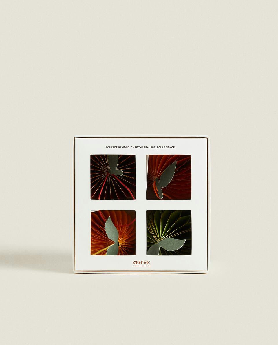 Paper fruit-shaped Christmas tree decoration with a 3D design.The pack includes 4 items: one apple-shaped, one orange-shaped, one lemon-shaped and one lime-shaped decoration.