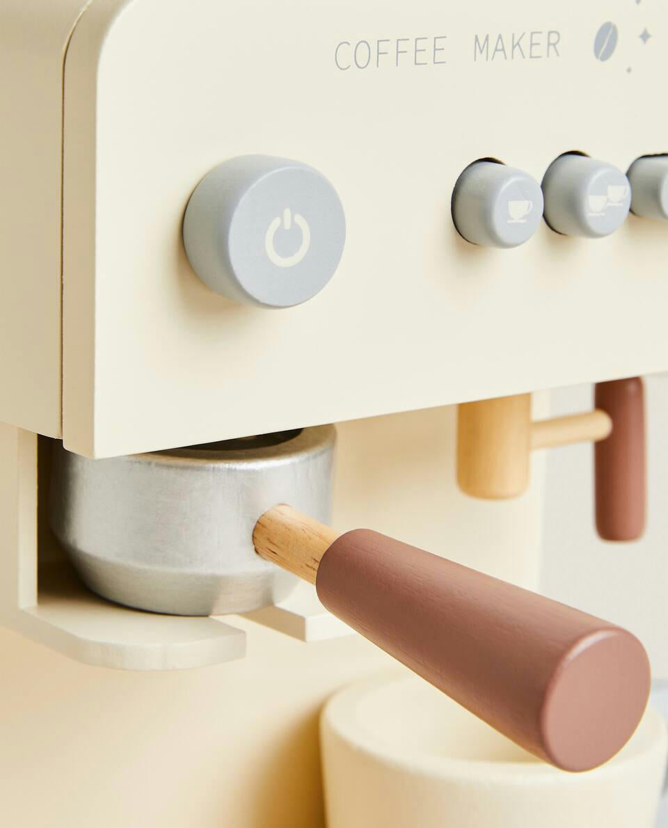 Wooden coffee maker with utensils, mug and 6 capsules.