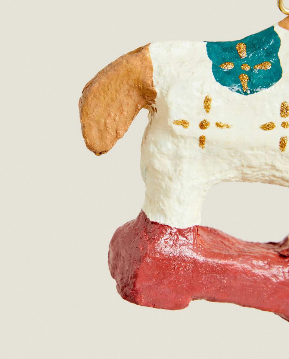 Papier-mach Christmas tree decoration in the shape of a rocking horse.