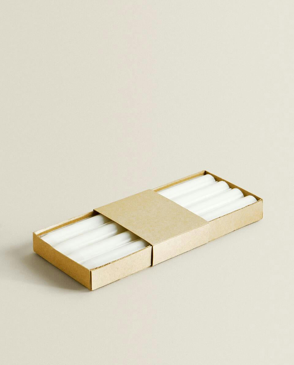 Basic long dinner candles. Sold in packs of 4. WARNING: - Keep in view. - Keep away from children. - Place vertically on a suitable surface. - Keep away from draughts and objects.