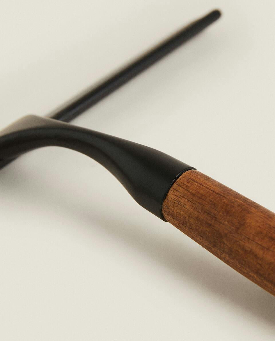 Glass cleaner with a wooden handle for showers and screens.