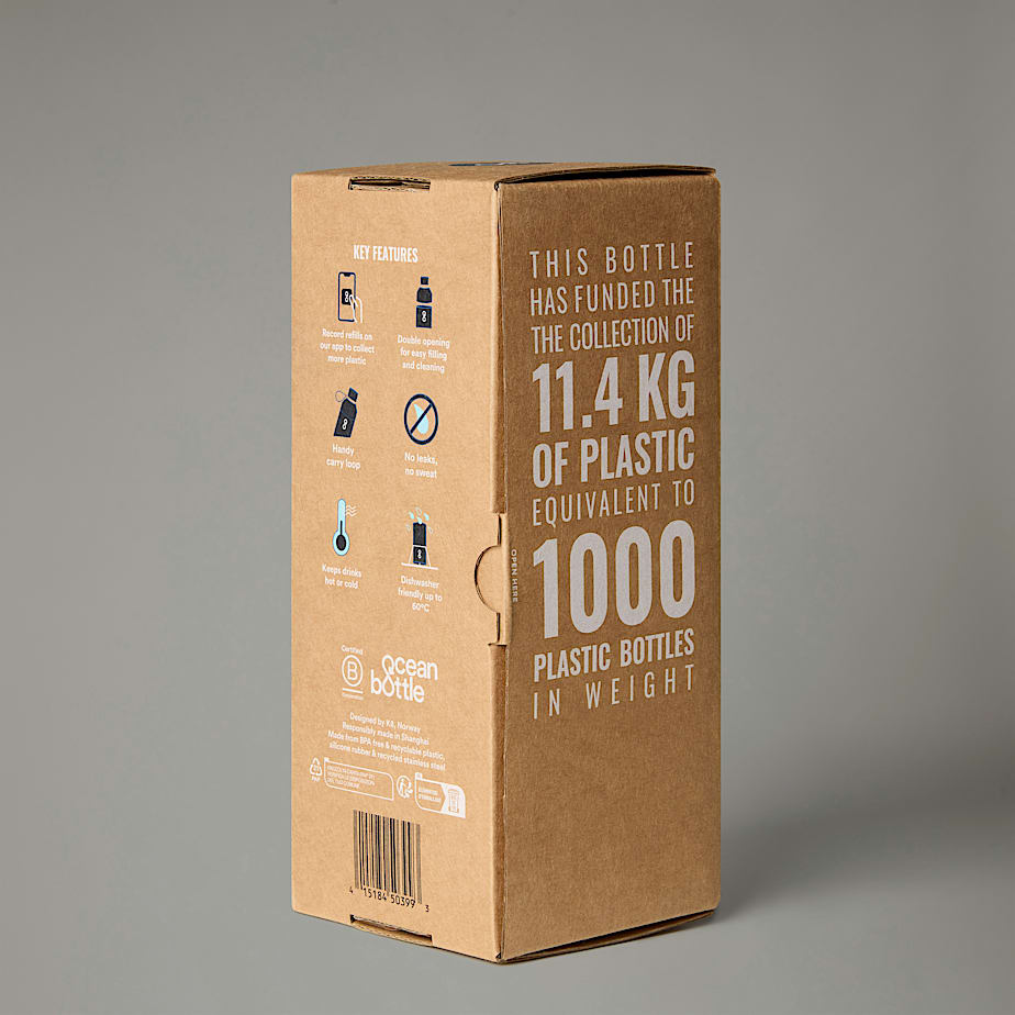 - Made from double-wall, vacuum-insulated stainless steel that's ultra-tough, the 0.65-litre X Ocean Bottle water bottle is cleverly designed to keep your cold drinks cold and hot drinks hot. It has a dual opening for ice and easy cleaning, it won't leak or sweat in your hiking backpack, and it's 100% dishwasher safe. It's made from a mix of recycled materials and ocean-bound plastic, too, helping to keep our oceans safe. The reusable water bottle is created in partnership with Ocean Bottle. With the sale of every Ocean Bottle, we prevent the equivalent of 1,000 plastic bottles from reaching the ocean. The bottle includes an embedded NFC base plate in the base of the bottle, which can be scanned to allow individuals to track their refills and plastic collection contribution through the Ocean Bottle app.