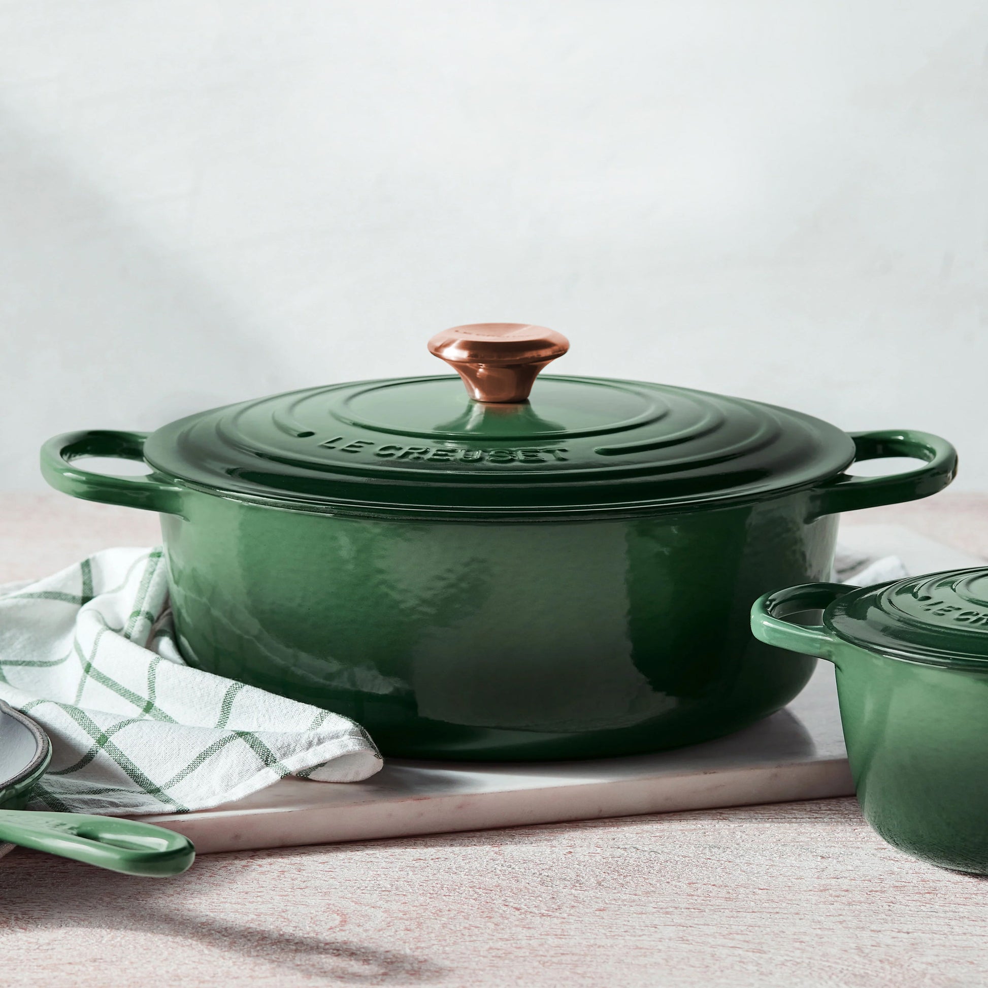 Signature Cast Iron 6.75-quart Artichaut Round Wide Dutch Oven with Copper Knob