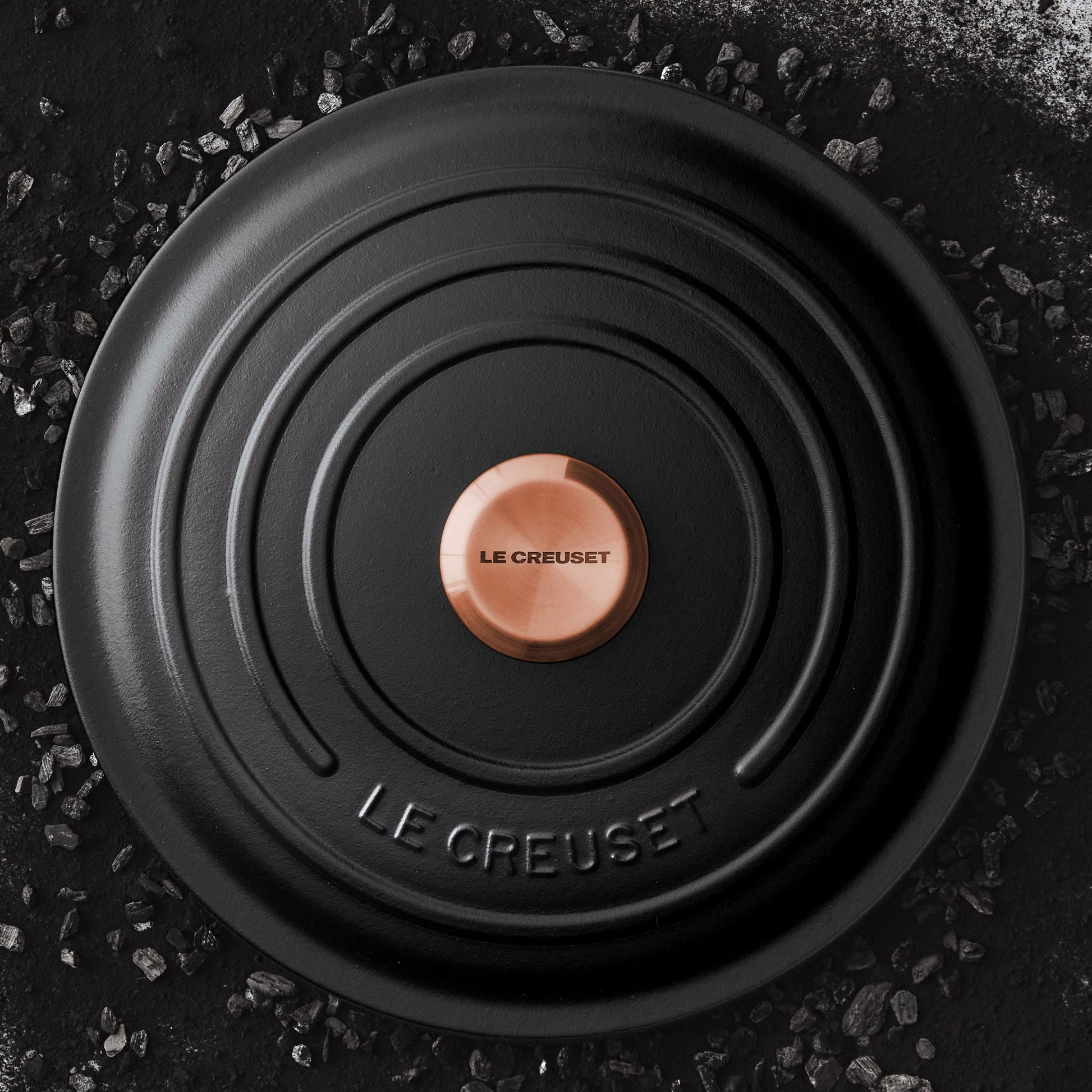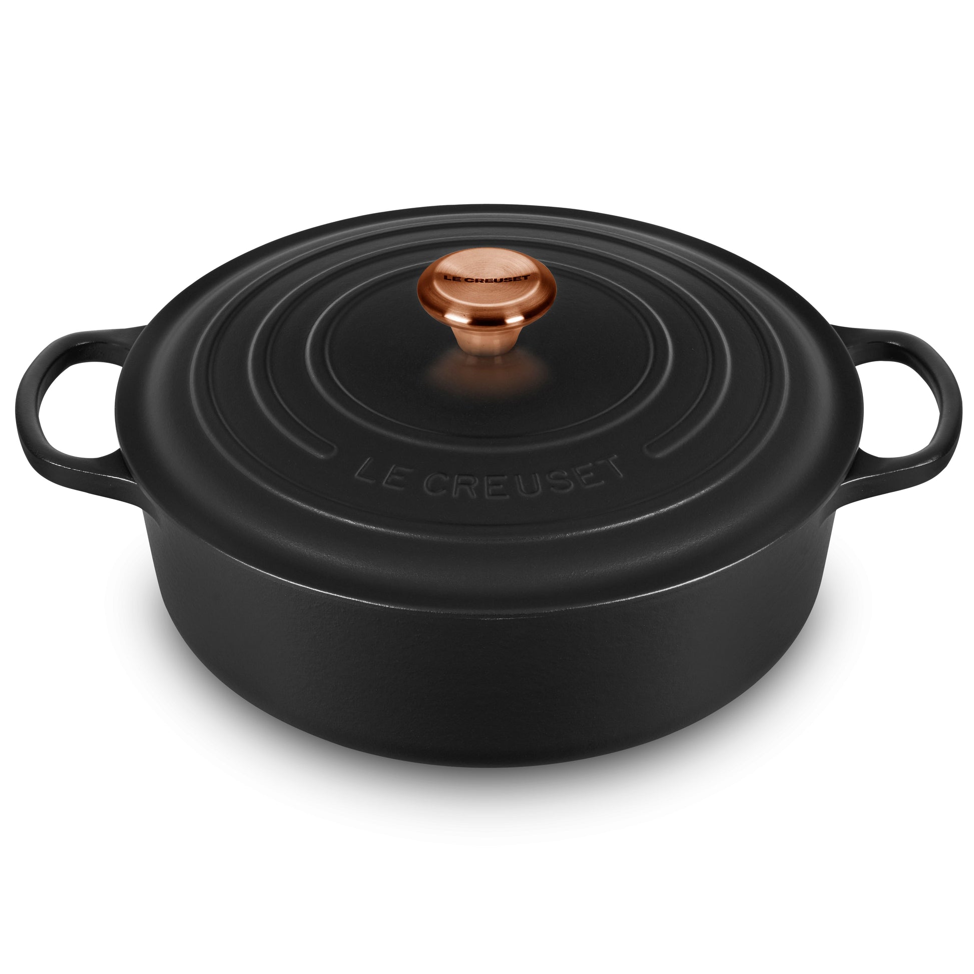 Signature Cast Iron 6.75-quart Licorice Round Wide Dutch Oven with Copper Knob