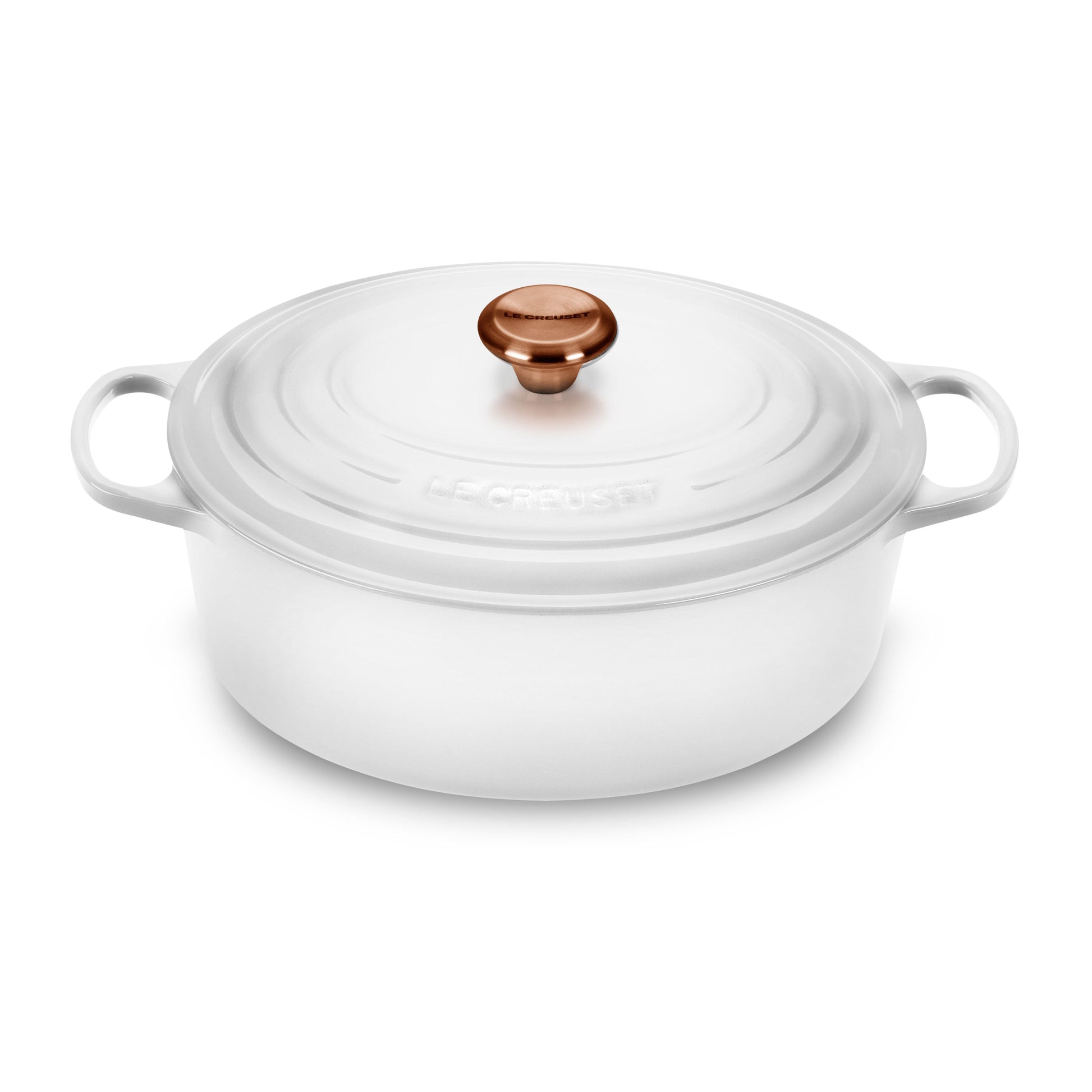 Signature Cast Iron 8-quart White Oval Dutch Oven with Copper Knob