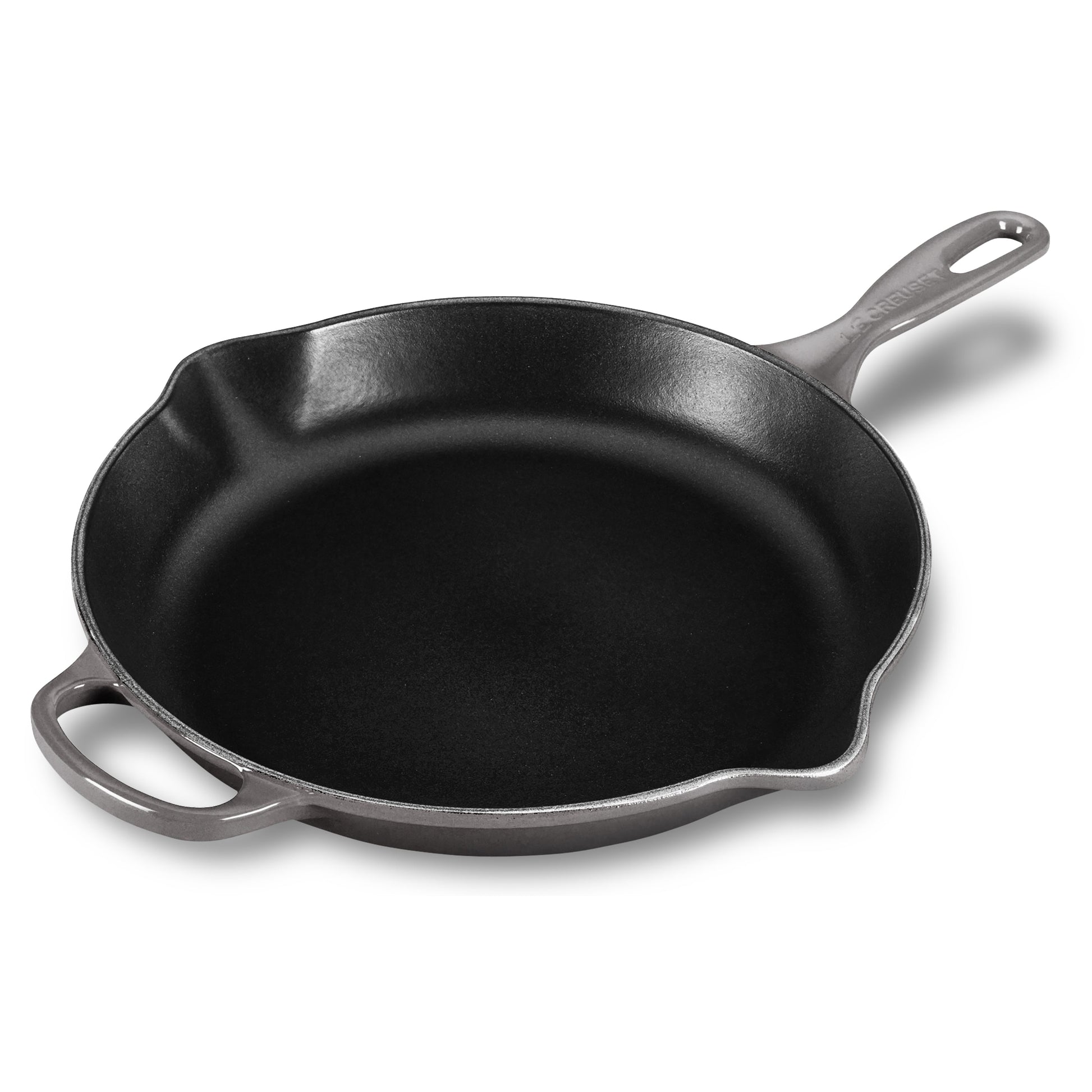 - Cast iron handle and wide-loop handle designed for easy lifting and transferring; pour spouts are designed for pouring sauces and drippings without the mess