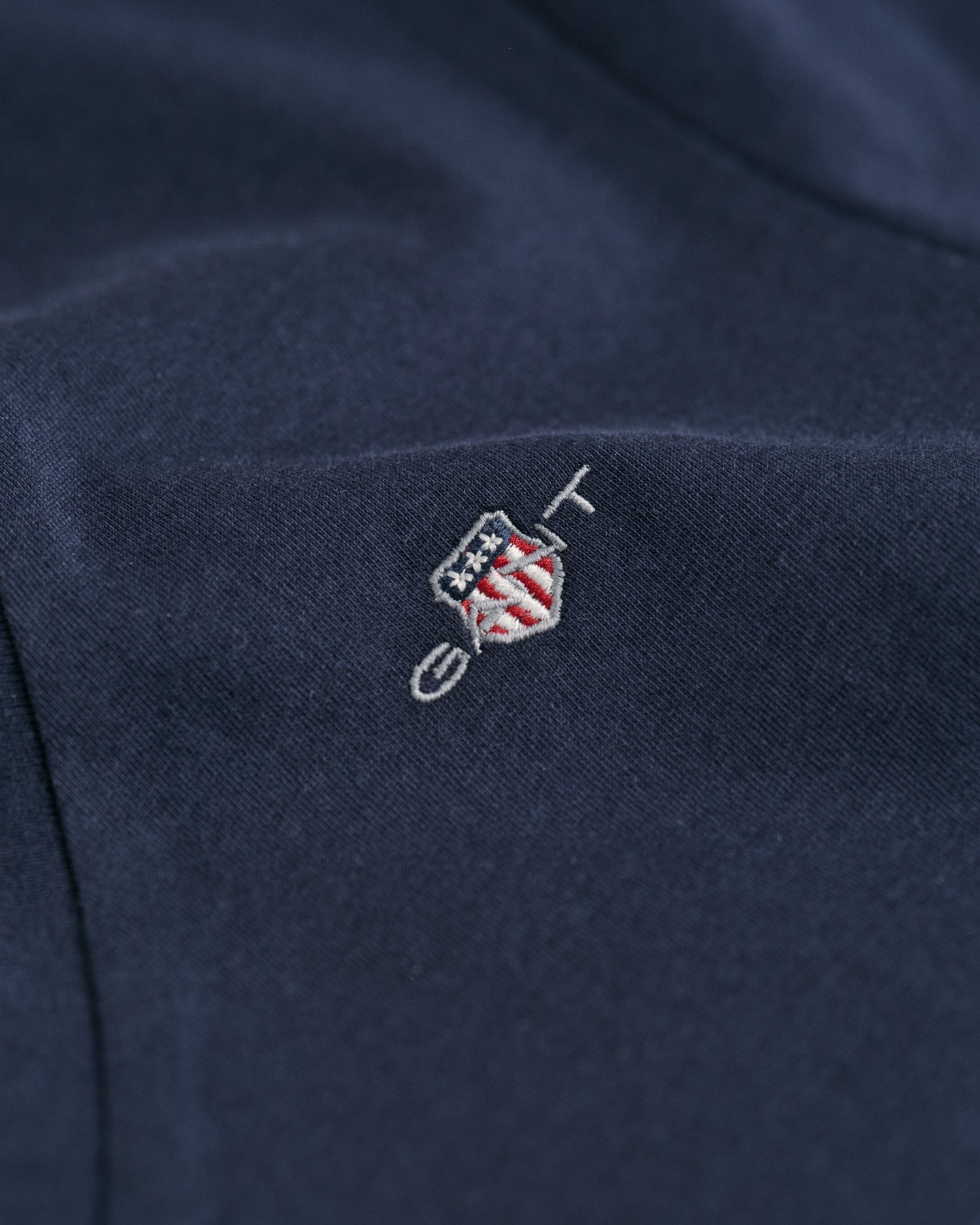 Crafted in soft cotton, this single jersey tee features a small-scale shield graphic embroidered at the chest. An easy, everyday basic, it has a regular fit, short sleeves and a V-neck.