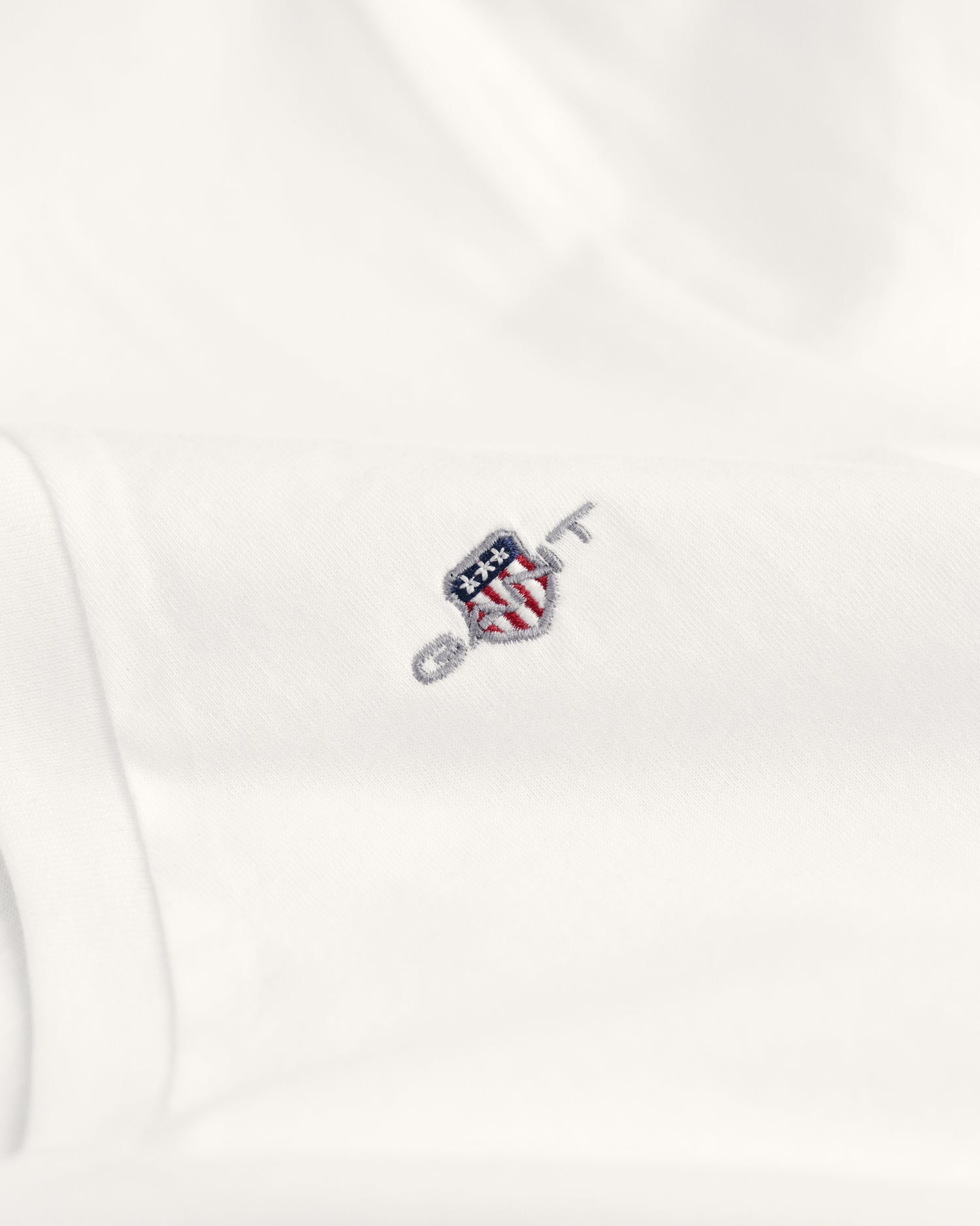 Crafted in soft cotton, this single jersey tee features a small-scale shield graphic embroidered at the chest. An easy, everyday basic, it has a regular fit, short sleeves and a V-neck.