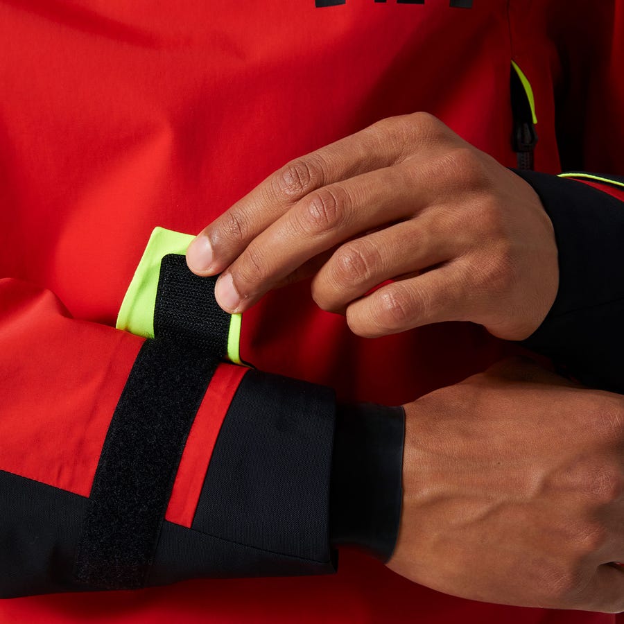 Designed for the most intense sail races, this extremely weatherproof smock top is sturdy enough to protect you in offshore and coastal sea environments. Built with out trusted professional technology, it's waterproof, breathable and windproof. We added sealed seams and latex cuffs at the neck and wrists to enhance the waterproofing. The smock's exterior is a sturdy Cordura and the cut is articulated with raglan sleeves for optimal mobility on deck. Additional sailing technical features include a helmet-compatible and packable hood, neon yellow elements, a UV visor, a high protective collar and more.