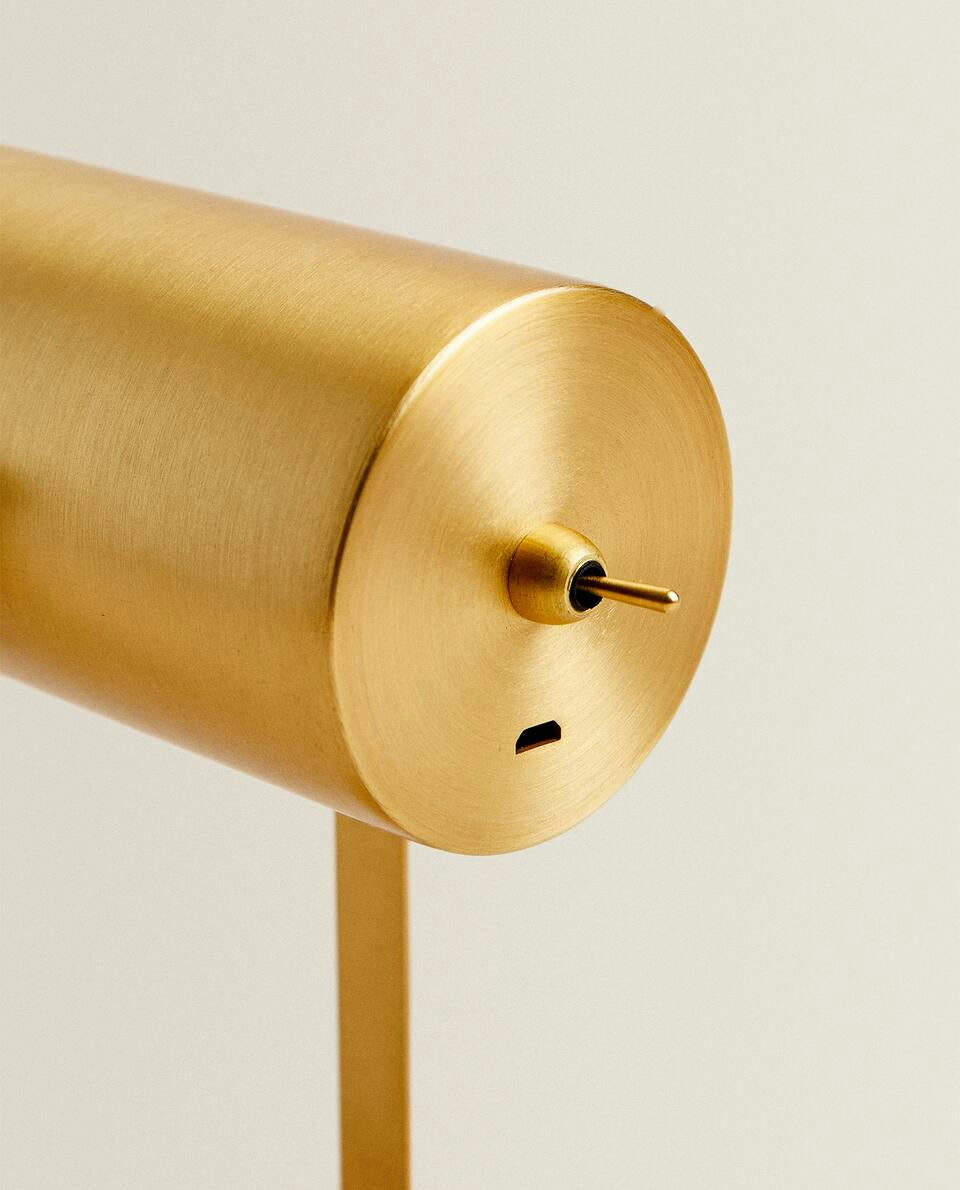Gold wireless spotlight with LED bulb, rechargeable by USB, for placing anywhere without worrying about plugs.Includes LED bulb.